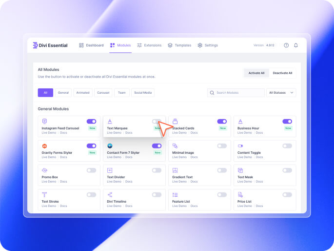 Yes! Divi Essential is a fully Divi 5 compatible plugin. We’ve rebuilt all our ultimate Divi modules to align with Divi 5’s new JSON-based rendering system. Enjoy all your favorite creative elements without any design or functionality issues in the latest version.