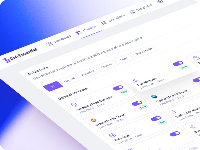 Build stunning websites faster with Divi Essential the ultimate Divi modules plugin for agencies, freelancers, and WordPress pros.