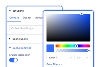 Yes! Enable Interaction in the Scene Behavior settings to let users rotate, hover, and click within your Spline scene directly on the page.