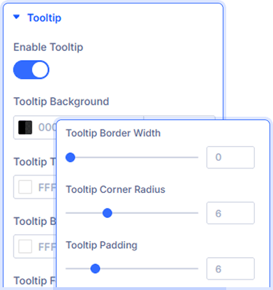 Absolutely! Style tooltip background, title color, body color, font size, border color, border width, corner radius, and padding—all from the Content tab.