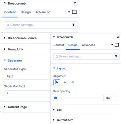 Yes! Supports text separators (/, >, |, →) or custom text. Control color, spacing, and styling independently.