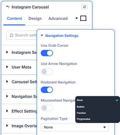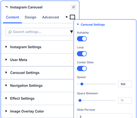 Each carousel connects to one account. You can add multiple carousel modules to the same page to showcase different Instagram accounts side-by-side seamlessly.