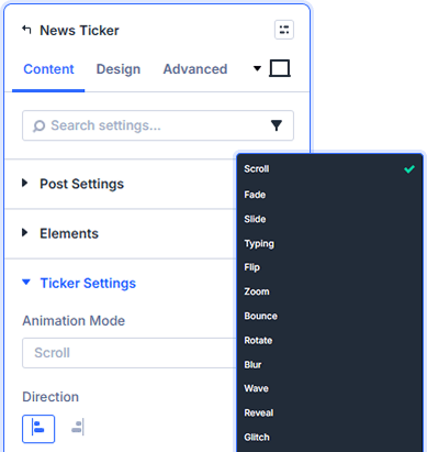 Can I control the scroll direction of the ticker?