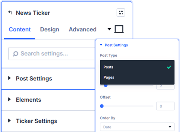 The module supports Posts and Pages. Set count, offset, and sort order to control exactly which content surfaces in the ticker.
