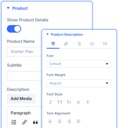 Yes! Enable Show Product Details to display a product name, subtitle, description, quantity selector, price, and price label above the button.