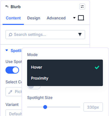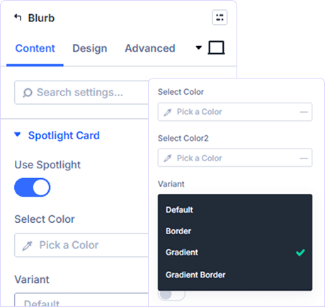 Transform your blurbs with interactive spotlight effects and stunning glowing animations. Add cursor-following highlights and premium card effects that captivate visitors and elevate your design.