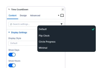Choose from 4 display styles: Default, Flip Clock, Circle, or Minimal for any campaign.