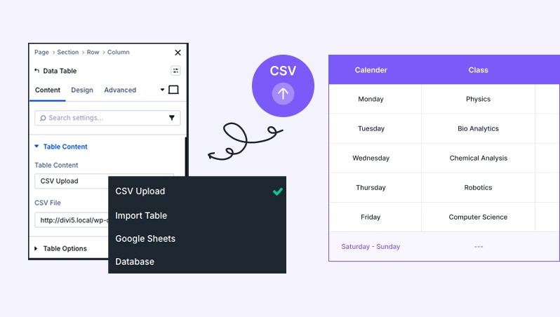 CSV Upload: Use this to quickly populate your table by uploading a standard .csv file. This is perfect for static data that you have already organized in Excel or Google Sheets.