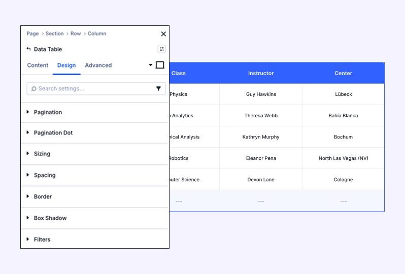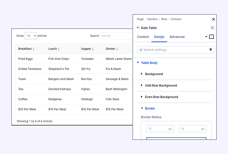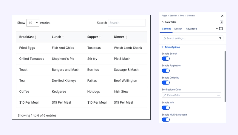 Enable Pagination: Use this for larger tables. It breaks the data into multiple pages (e.g., 10 rows per page) to keep your layout clean and improve page load speed.
