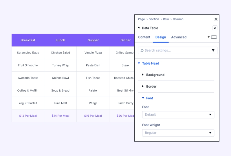 Font: Customize the typography for column titles, including font family, weight, style, and color.