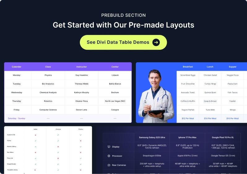 The Data Table module for Divi Essential (Divi 5) is a high-performance tool designed to organize and display complex datasets with ease. It features seamless integration with multiple data sources—including CSV, Google Sheets, and TablePress—while providing visitors with intuitive front-end tools like real-time search, multi-column sorting, and pagination for a professional, user-friendly experience.