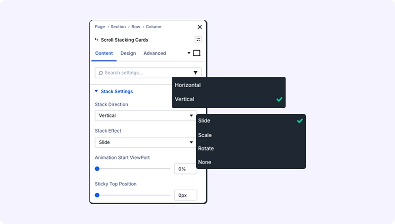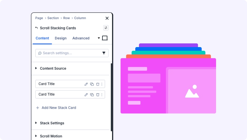 Posts: Select this option to generate your cards dynamically. The module will automatically pull data from your WordPress posts, allowing you to display your latest blog entries or portfolio items in a stacking layout.
