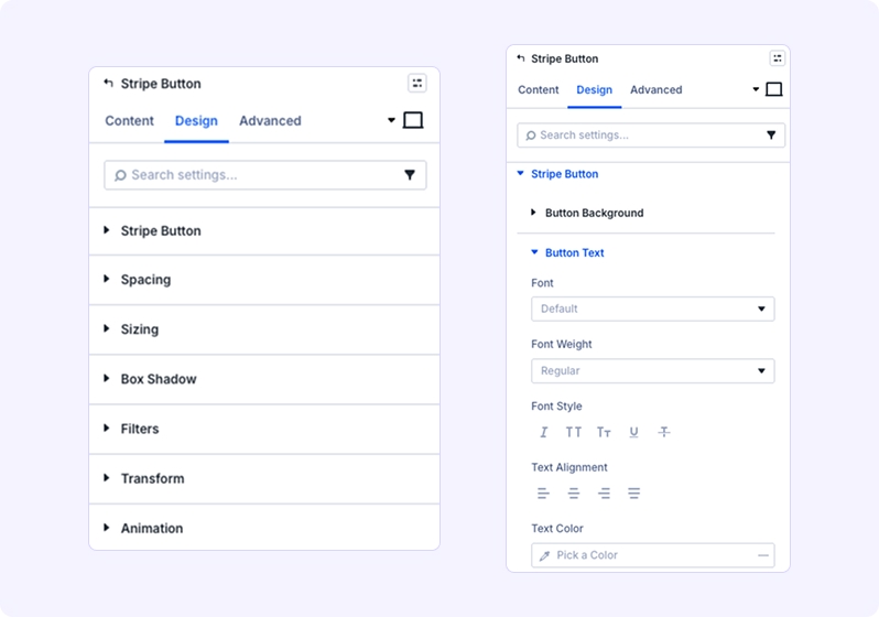 Stripe Button adds a customizable payment button to any Divi layout. Configure payment mode (Test/Live), post‑payment redirects, amount and currency (if exposed in your build), and fully style the button—without custom code. Ideal for single‑item purchases, tickets, donations, or instant access unlocks.
