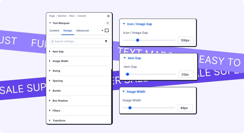 Item Gap: Space between multiple marquee items.