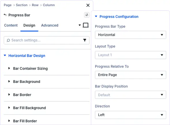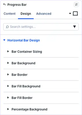 Yes, the Progress Bar is fully responsive with separate design controls for desktop, tablet, and mobile devices. The bar scales perfectly and maintains functionality across all screen sizes.