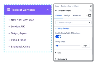 Yes! Enable the “Sticky Table Of Contents” option in the Sticky Settings panel. This keeps your navigation visible as visitors scroll through long-form content, improving user experience significantly.