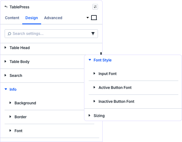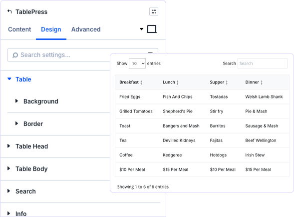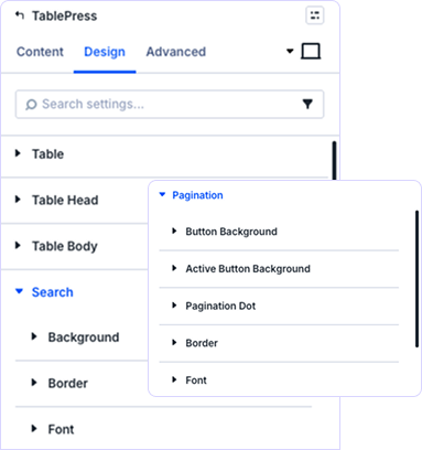 Style your existing TablePress tables directly in Divi’s Visual Builder. Search, sorting, pagination, and beautiful designs—all without touching a single line of code.